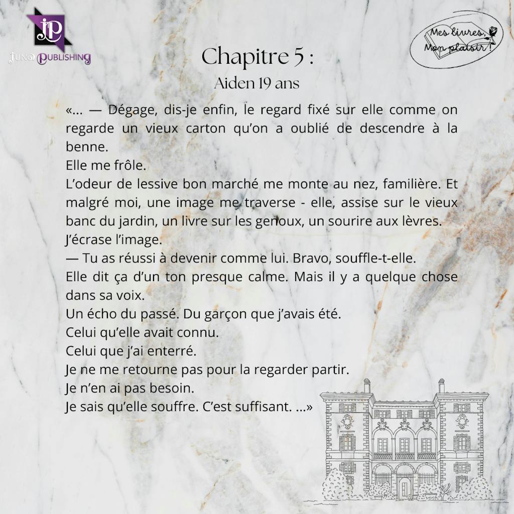 Jade et Aiden n’auraient jamais dû se côtoyer. Pourtant, contre toute attente, une amitié profonde les unit au manoir Davis où la mère de Jade travaille. Entre éclats de rire et confidences volées sous les étoiles, ils bâtissent un univers à part. Mais tout bascule : Aiden part pour une prestigieuse école, emportant avec lui les promesses de leur amitié. Lorsqu’il revient, ce n’est plus le garçon chaleureux et insouciant que Jade connaissait. À sa place se tient un homme froid, implacable.
