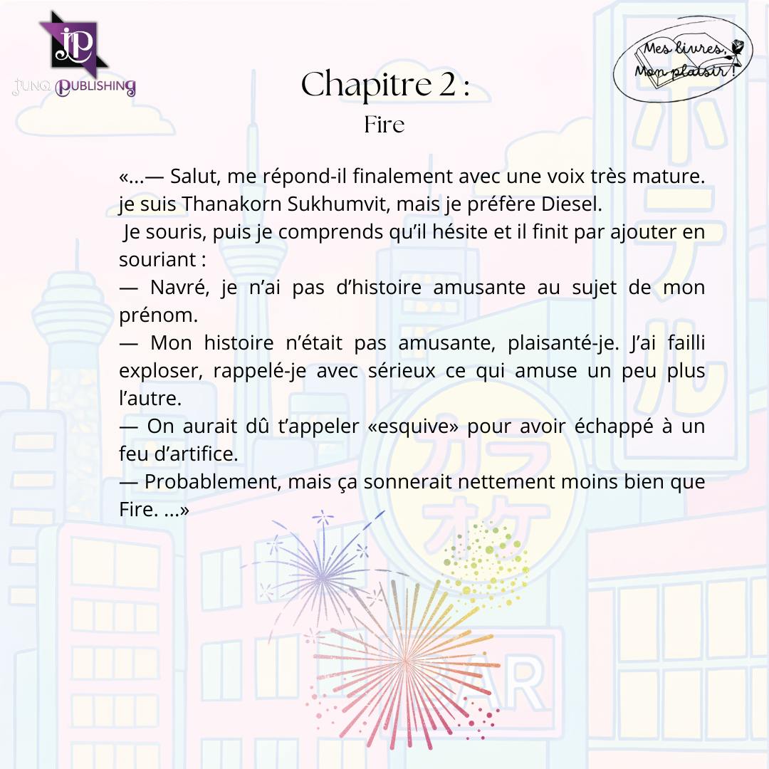 La plume est toujours un plaisir à la lecture, fluide, légère, accrocheuse. L'auteure nous offre une très belle histoire d'amour au cœur de l'université de Bangkok, avec une enquête discrète mais porteuse pour le roman. Entre identité secrète, non-dits, faibles mensonges, arrangements des parents, problèmes de société,... le suspense et l'addiction est à son comble.